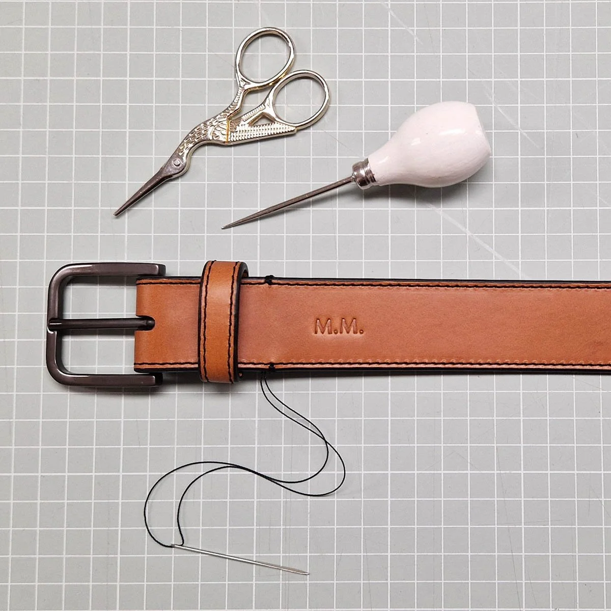 The monogram can be placed either close to the buckle or on the end of the belt. Take into consideration that if you don’t want anyone to see your initials, you should opt for the position near the buckle.